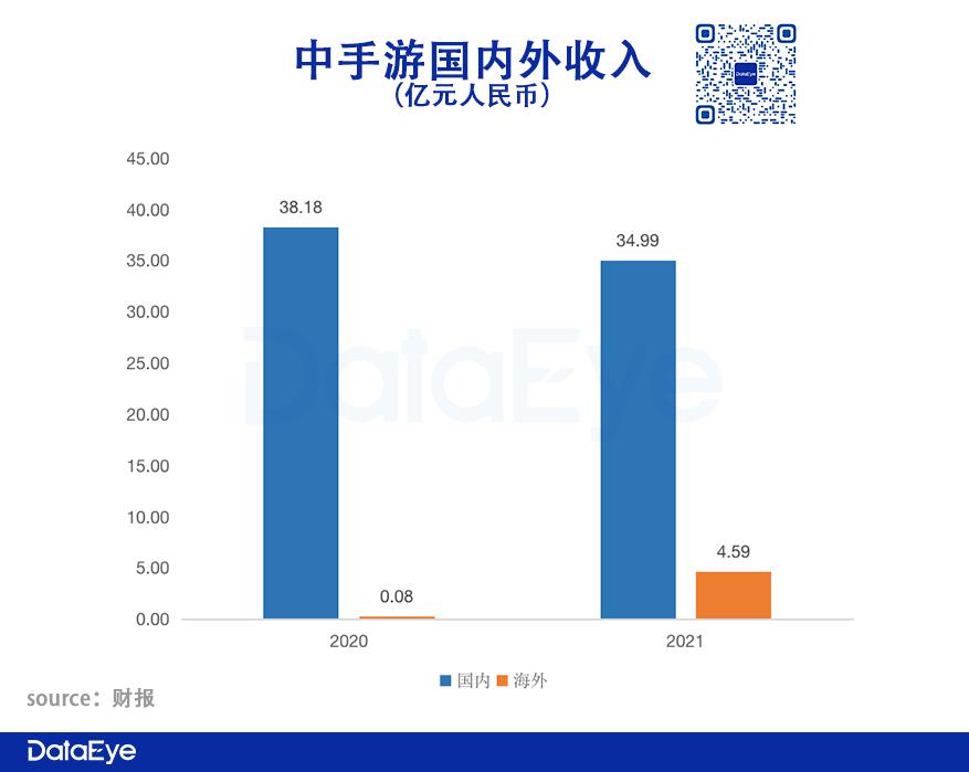 国内微跌,海外快速突破,但仍处于初期阶段。在国内,中手游收入从38亿小幅跌至不到35亿,主要因为版号影响。而海外收入虽然略显“迟到”但出现暴增:2021年海外业务收入4.59亿元,同比增长72倍,海外业务占比自2020年0.2%上升至11.6%。暴涨主要因为《新射雕群侠传之铁血丹心》的“极大成功”(财报原文)以及软星《仙剑奇侠传7》的热卖。但中手游目前出海主要面向港澳台、东南亚,对于美国、日韩以及其它新兴市场布局较少——出海处于初级阶段。