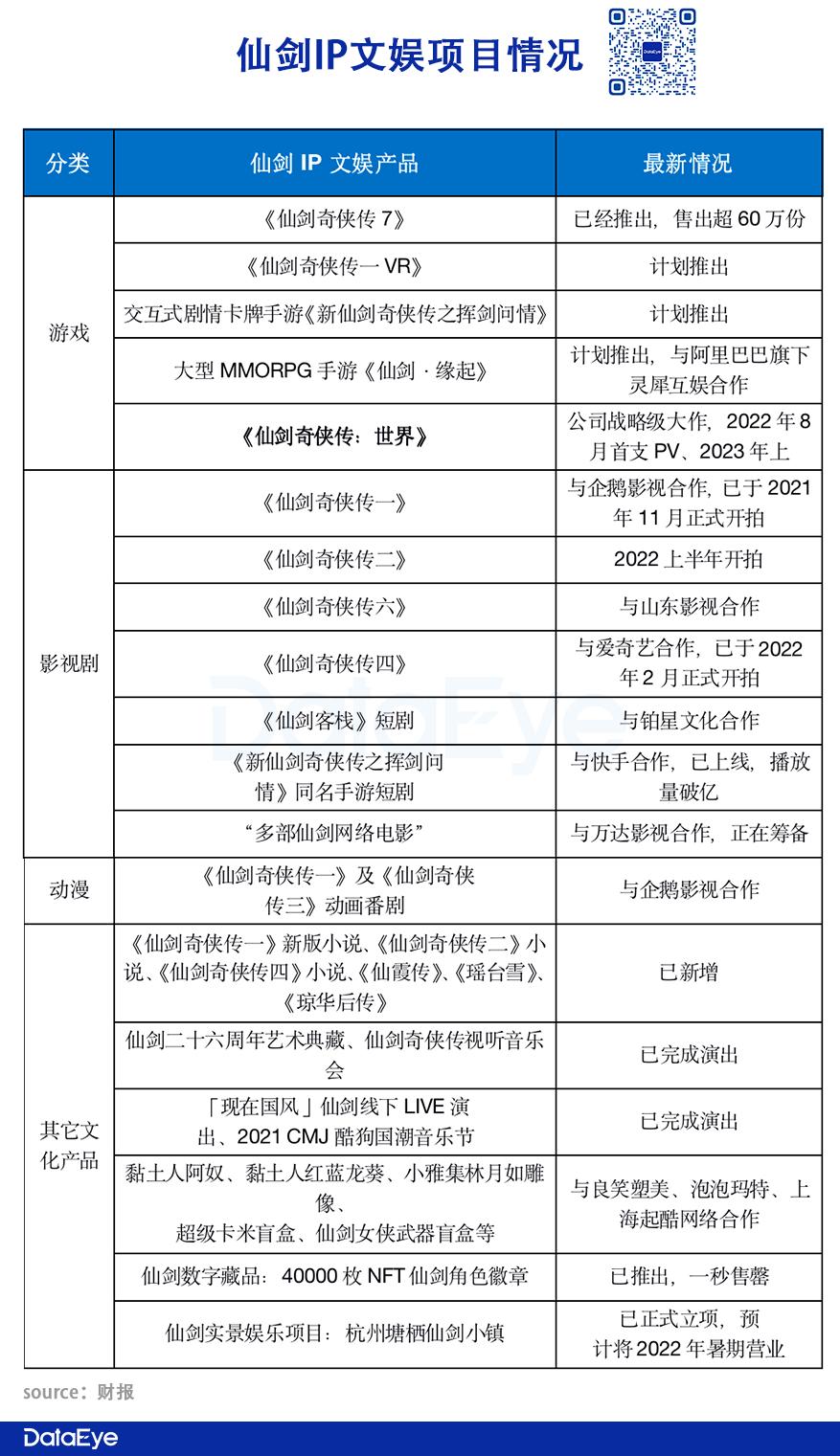 比如,2021年,中手游以约6.42 亿港元收购大宇资讯旗下子公司北京软星49%的股份。自此,中手游已完成对北京软星及其旗下《仙剑奇侠传》IP 大陆地区权益的完整收购。紧接着,2022年,一大批仙剑IP的文化产品即将涌现,包括至少五部仙剑影视剧同期开拍,明年后年可能掀起“仙剑热”——中手游本质是“IP运营公司”,IP授权收入仍有较高的增长潜力,因此不能简单以“游戏公司”的视角和估值方式看待。