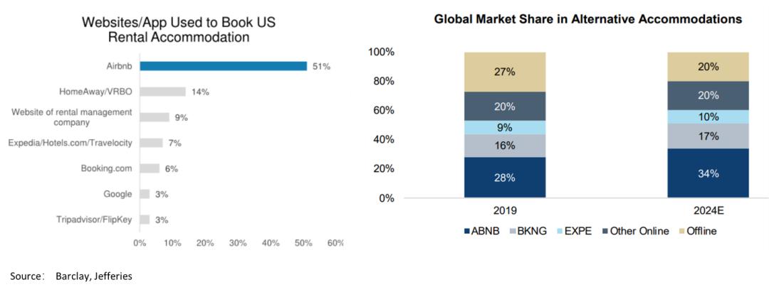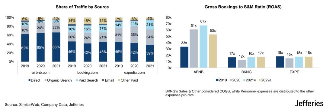 ①Airbnb在民宿出租赛道,拥有品牌即品类的知名度与地位,拥有90%左右的自然流量;