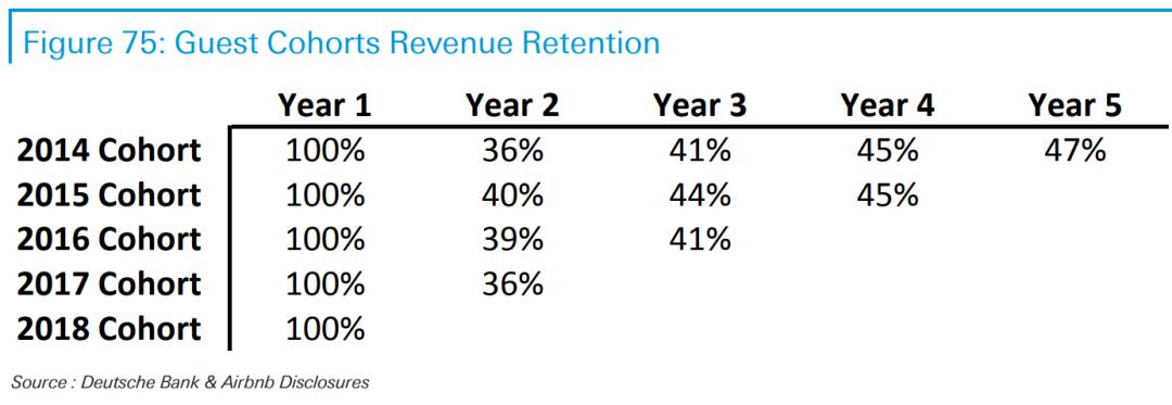 也正由于这一双边循环模式,平台内的房东和房客对平台的有着较强的粘性。根据公司招股书的披露,公司用户的5年留存率达47%。此外2019年公司69%的营收是来自老用户,而来自老房源的收入占比更是高达84%,可见用户粘性之强。