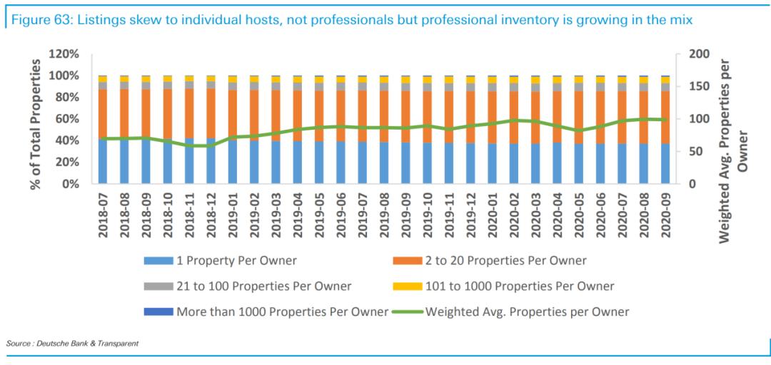 据公司披露,到2019年,Airbnb平台上90%的房源来自个人房东,且78%间夜预订来自个人拥有的房源。基于第三方数据交叉验证,到3Q2020,Airbnb平台上来自拥有20套以下物业房源的房东占比在80%以上,仅拥有一套房源的房东则占约40%。考虑一般情况下,专业物管机构才会拥有数量众多的房产,我们认为第三方数据也验证了公司平台上的房东主要是个人。