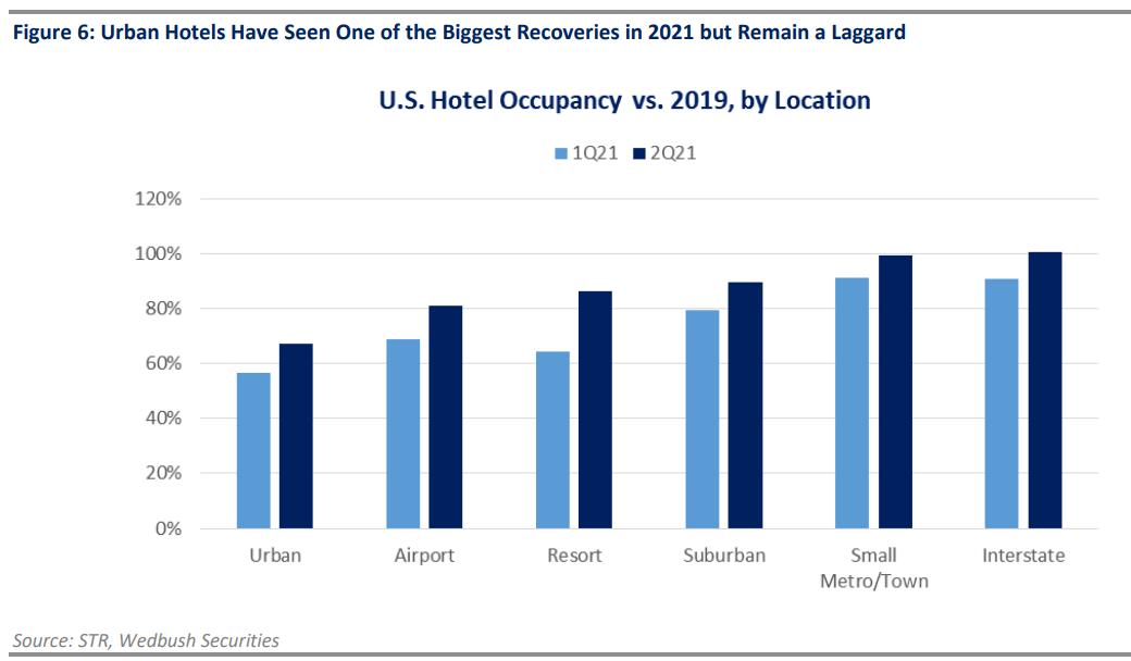 上文中,我们根据多方市场调查推断,更休闲的住宿类型和地点在疫情中更受顾客偏好,而近期分类型/地点的酒店入住率数据也基本符合我们的推断。