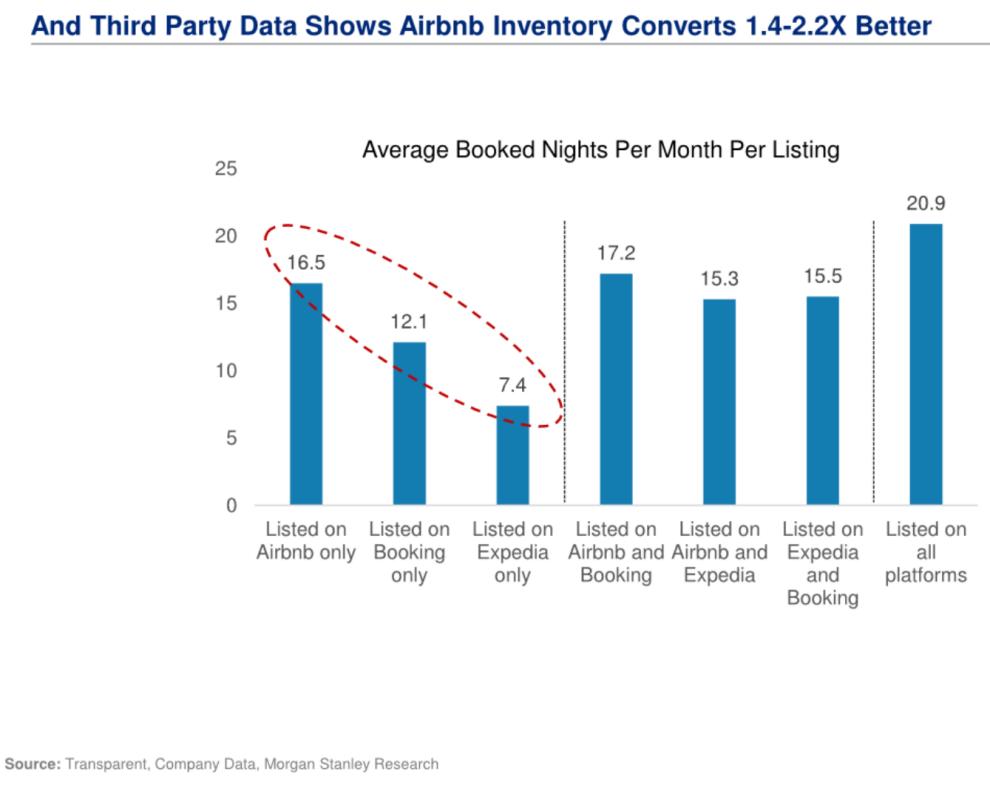 以上我们论述了Airbnb的大量来自个人的独占房源是公司成功的最核心资产,那么问题便是为何个人房东会选择Airbnb而非其他平台?