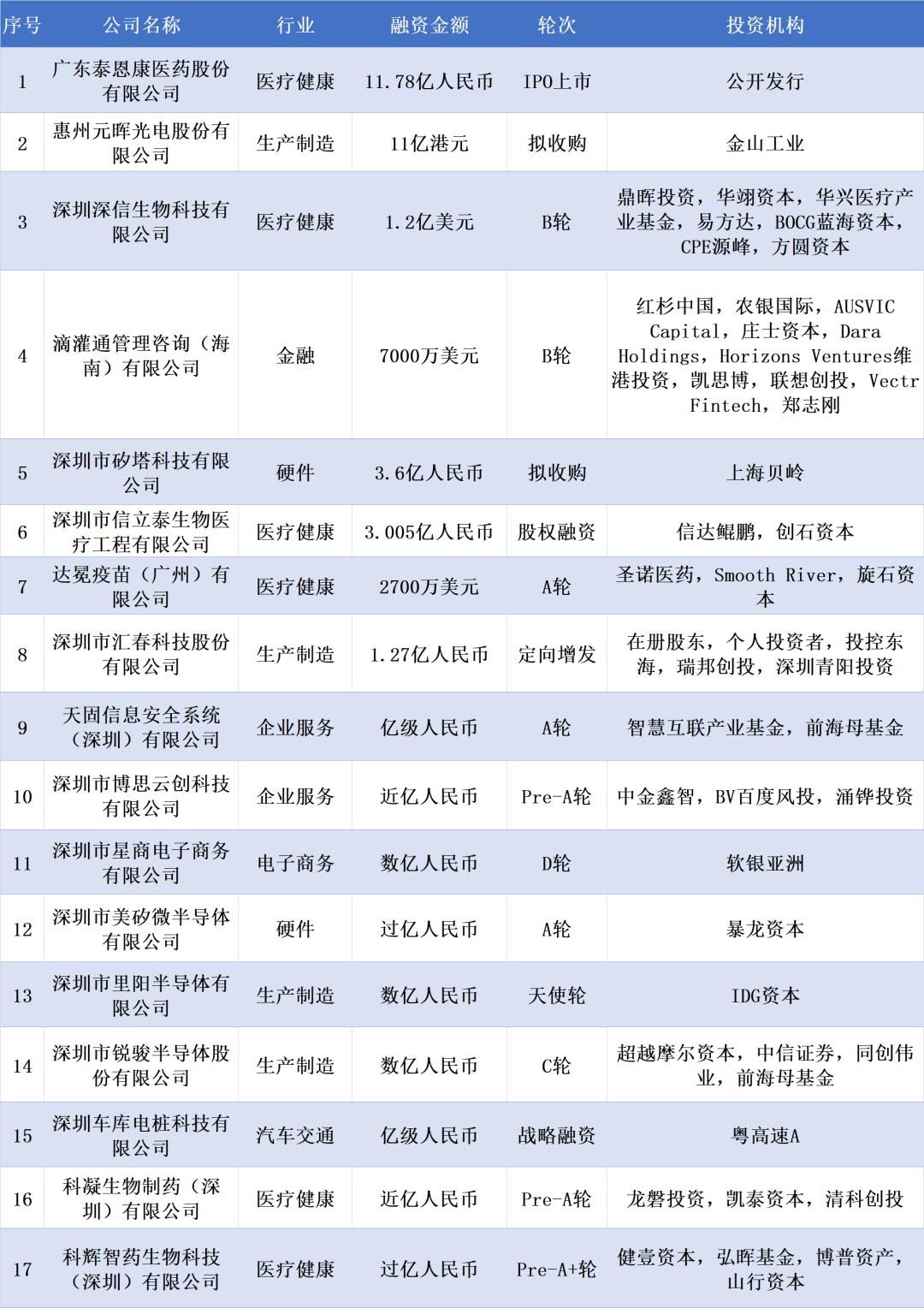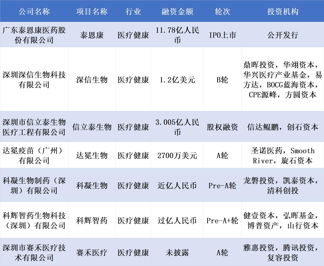 本周累积融资额超54亿元,泰恩康融资超11亿 | 36氪华南融资周报