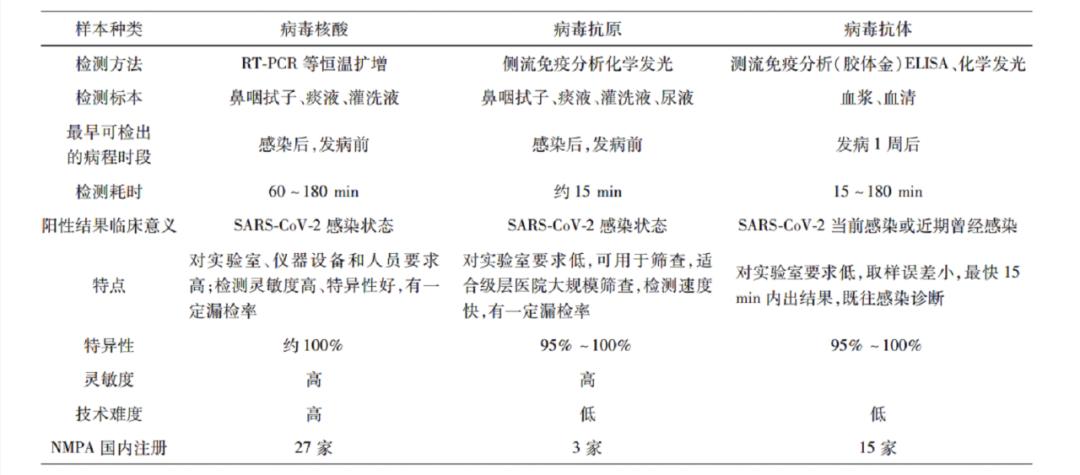 各新冠病毒检测方法对比