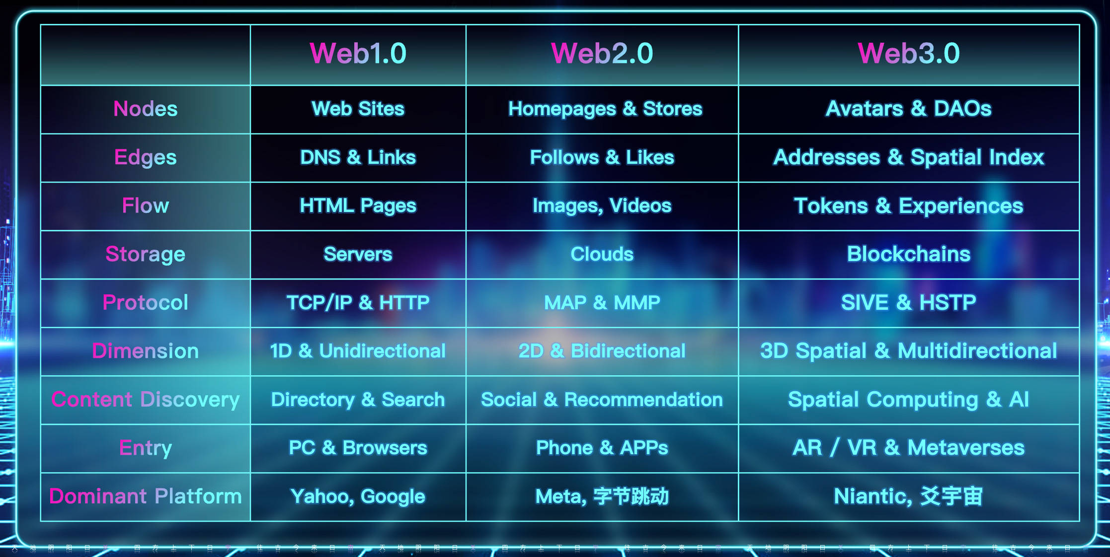 时下又一次声量火热的Web3.0则会是今后二三十年的网络形态主流,AR/VR/元宇宙等入口成为新交互模式,人工智能与区块链则成为逻辑层与数据层的集中呈现。
