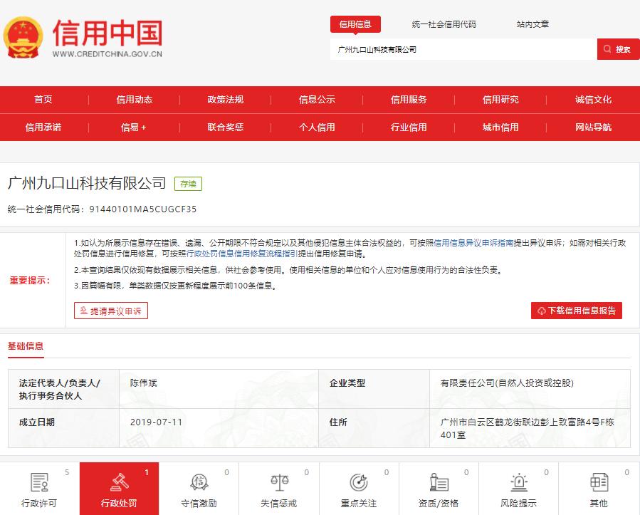 同年,广州九口山科技有限公司(下称“九口山科技”)因为销售标签不符合规定的化妆品而被罚款10.626万元。