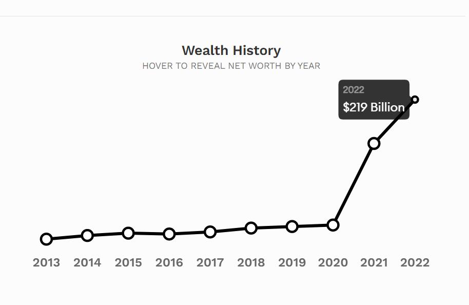 今年4月6日,美国财富杂志《福布斯》(Forbes)公布了2022年全球亿万富豪榜,马斯克以2190亿美元净资产,取代亚马逊创始人贝索斯(Jeff Bezos),成为全球首富。而相比于去年,马斯克的财富又增加了680亿美元。