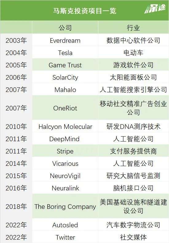 今天,深途就带大家扒一扒马斯克庞大而隐蔽的投资版图。