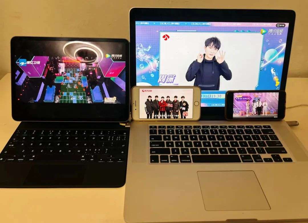 2021年最后一天,@传媒小娱同时观看5场跨年晚会,使用1台电脑、1部pad和3部手机同时录屏,多档综艺同时段播出或遇上双十一等特殊事件节点,多设备操作是他的常态;平日里,他就用1.5倍速或2倍速观看综艺和明星物料,大脑飞速运转的同时,还要保证自己能够尽快找到可传播的点,争取抢先发布。