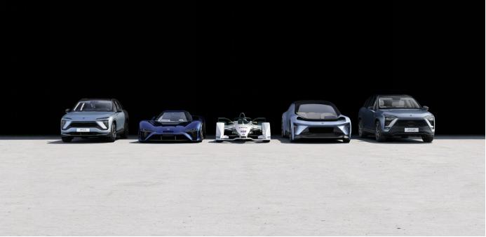 △超级跑车EP9和量产SUV ES8在展厅中