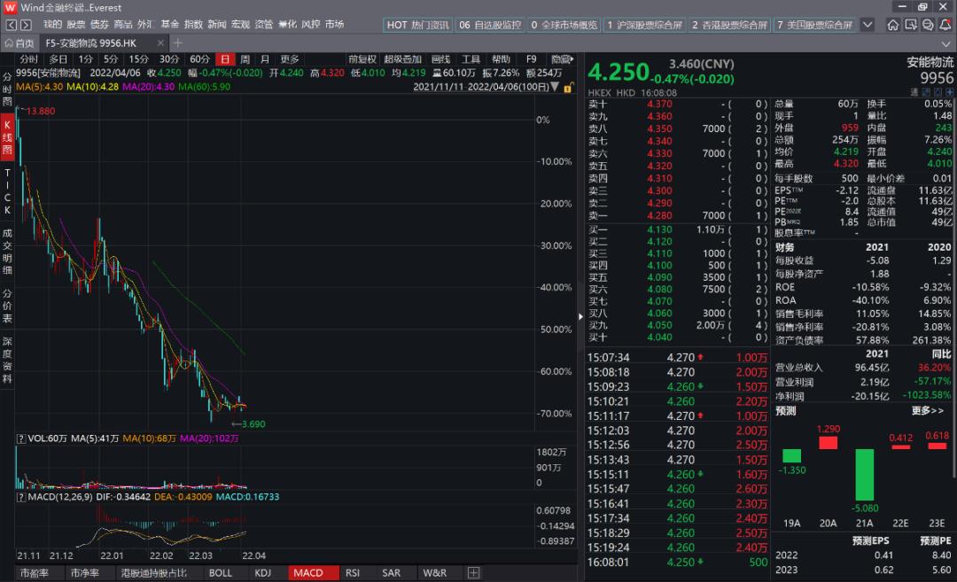 图:安能物流的股价,来源:wind