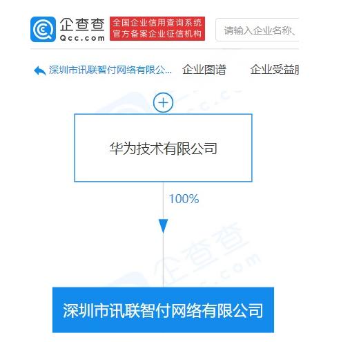 根据工商信息显示,深圳市讯联智付网络有限公司已完成工商信息变更,上海沃芮欧信息科技有限公司从股东中退出,华为技术有限公司以 100% 的持股比例,成为讯联智付控股股东。