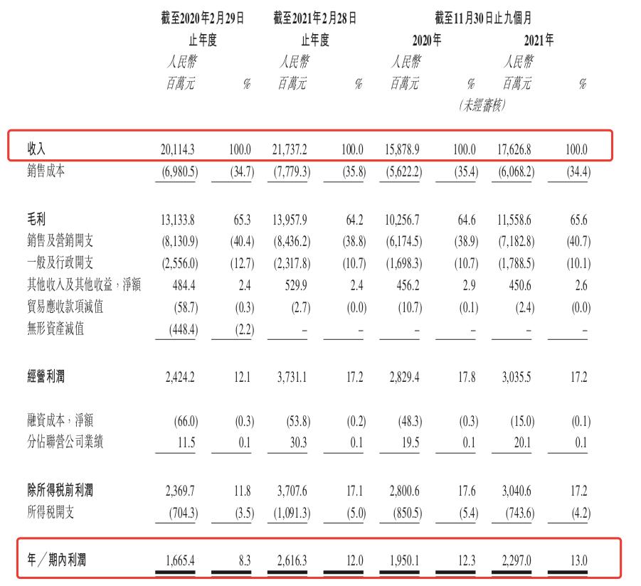 在电商方面,百丽积极合作天猫京东等现有电商平台以及抖音小红书等新兴社交平台,加大网络广告和营销活动的投入。招股书显示,2019财年百丽在推广和广告费用上投入了7亿元,2021年3至11月,为全力追赶同业的电商能力,百丽的推广和广告费用增加到8.9亿元。