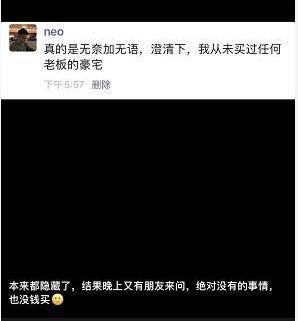 据最新消息,喜茶官方已否认这一传言,称纯属不实信息,正在对编造、传播不实信息的行为,采取必要措施。4月7日晚5点,喜茶创始人聂云宸在其朋友圈澄清此事,“绝对没有的事情,真是无奈加无语,我从未买过任何老板的豪宅,也没钱买。”