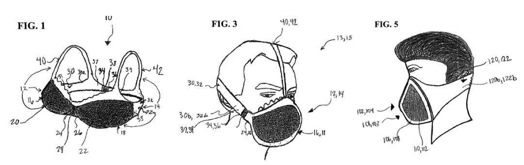 这个作为服装装置的胸罩可以断开分成两部分,两个罩杯都添加了过滤器,学名叫「可转换成一个或多个面罩的服装装置」