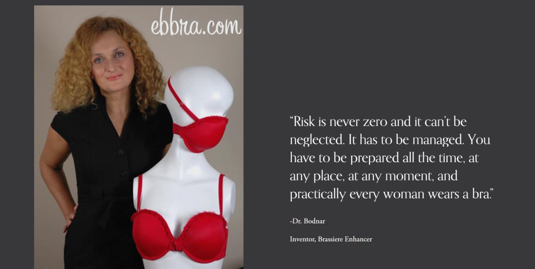 波 琳娜(Elena N.Bodnar)曾参与切尔诺贝利核事故受害者救助活动,又看到了 9.11 事件受害者使用衣服过滤空气中有害物质的镜头,于是「胸罩变口罩」的发明专利在她的灵感和设计下 诞生了。