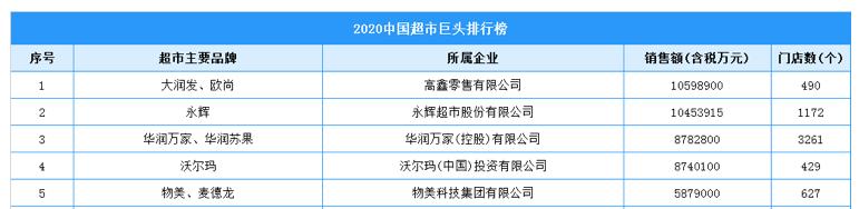 据中国连锁经营协会发布的“2020年中国超市百强”榜单显示,物美、麦德龙排第五,销售额587.9亿元,相当于前两名大润发和永辉的一半左右。