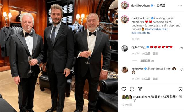 早在今年3月,贝克汉姆就在社交网站上晒了与亲家试礼服的合影。随后,贝克汉姆一家飞抵美国准备婚礼。