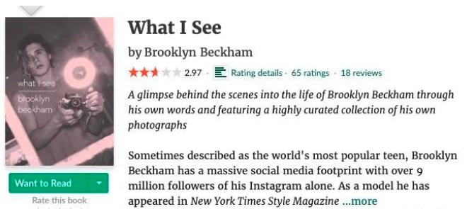 毕竟,大布近些年有些“废柴”的嫌疑。他之前签了模特公司,但没搞出多大火花。后来进军摄影界,然而,出的摄影书评价只有2.5颗星。没多久,他又要当厨师,搞了一个美食节目《与布鲁克林一起下厨》,但他做饭更像是作秀,有媒体发文称《布鲁克林的做菜节目有个问题:他不知道咋做》。