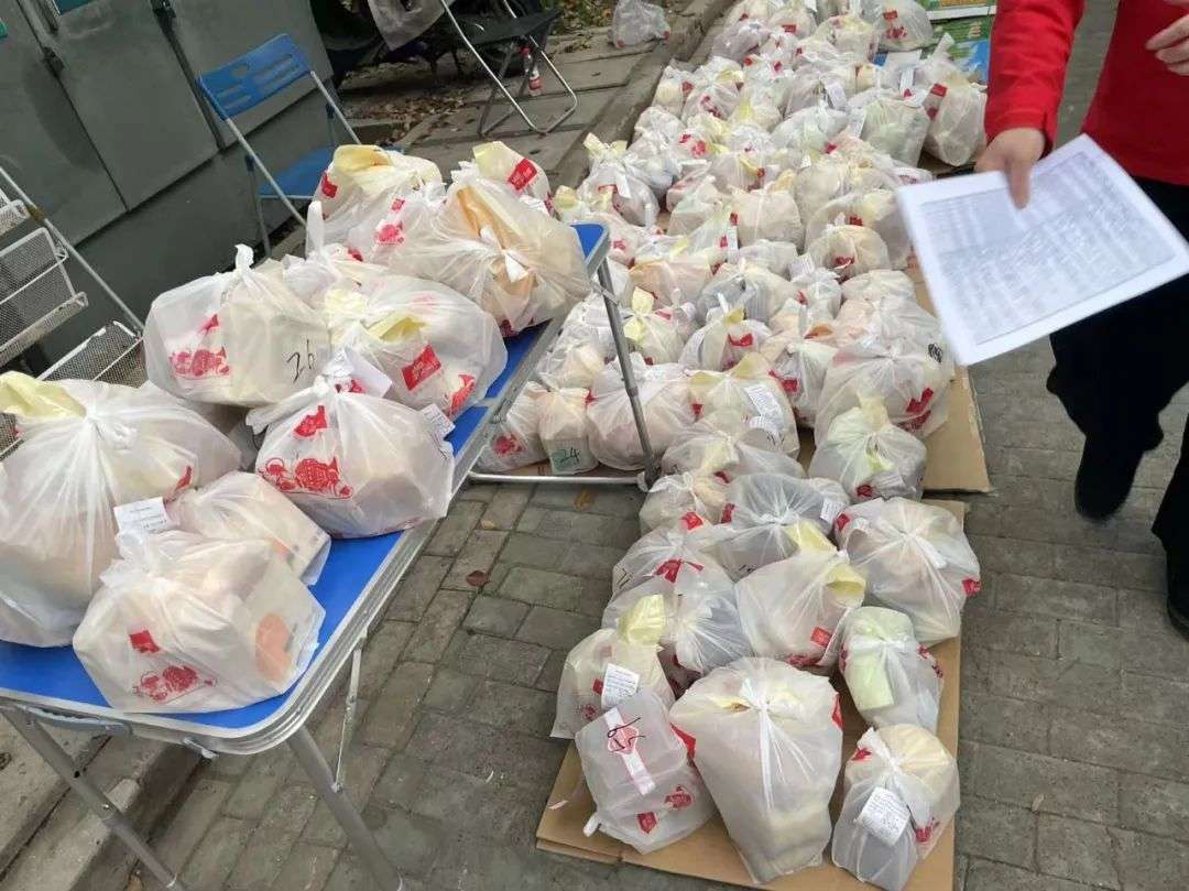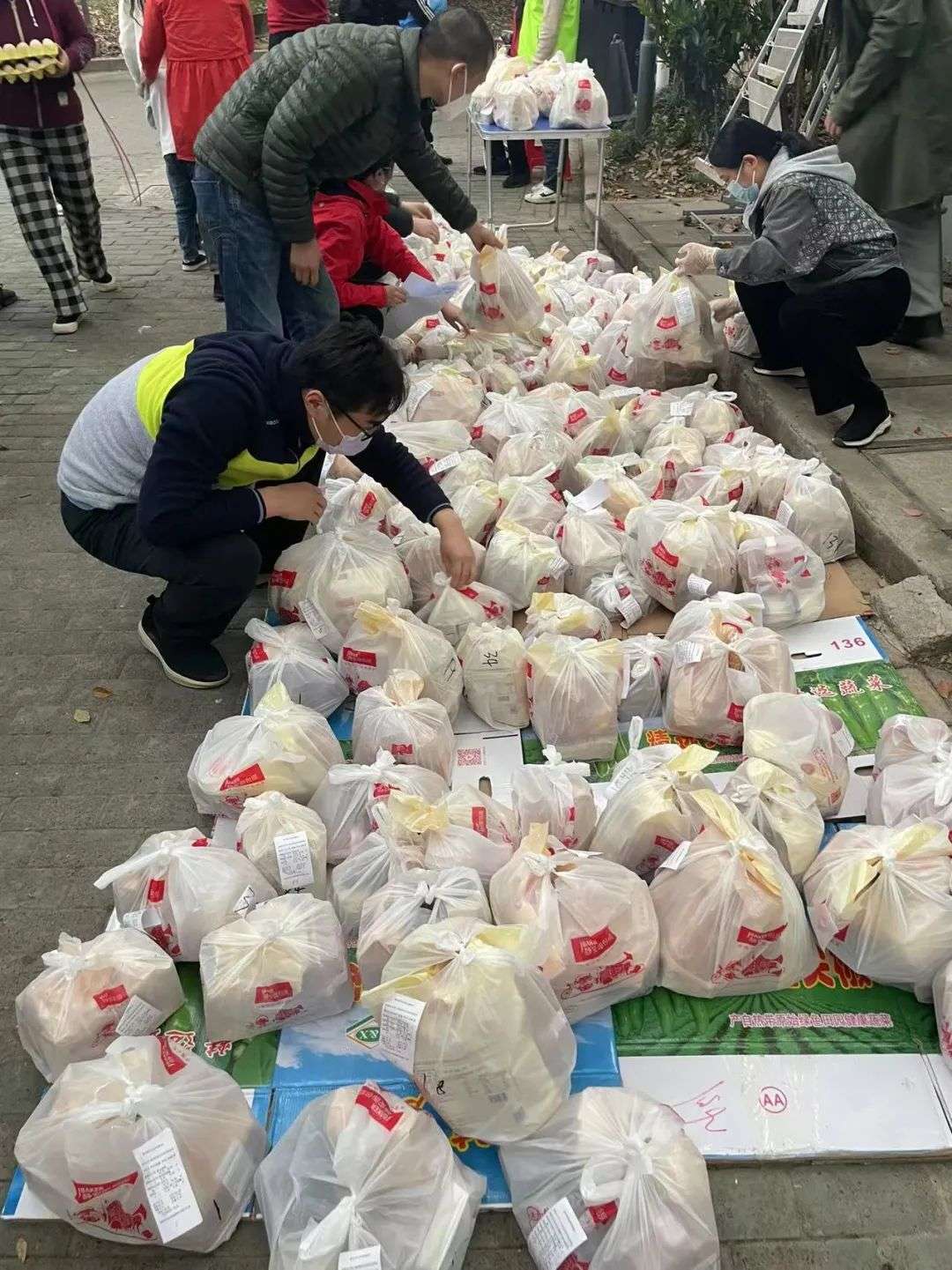 由于运力紧张和管制要求,商家一般会规定团购份数,并配送至小区指定点位,和志愿者对接。