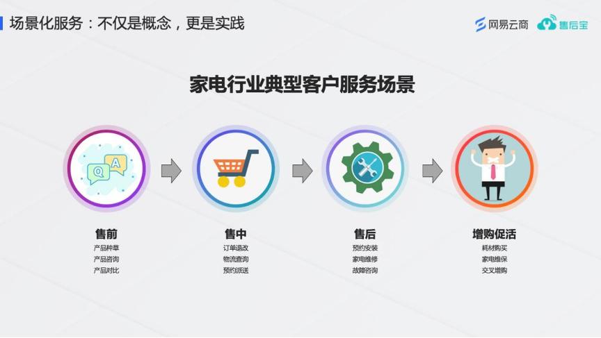 基于此,网易云商和售后宝,共同发挥所长,打通从客户连接——客户服务交付——客户持续运营的服务闭环,让家电行业的客户服务焕发出全新的生机。