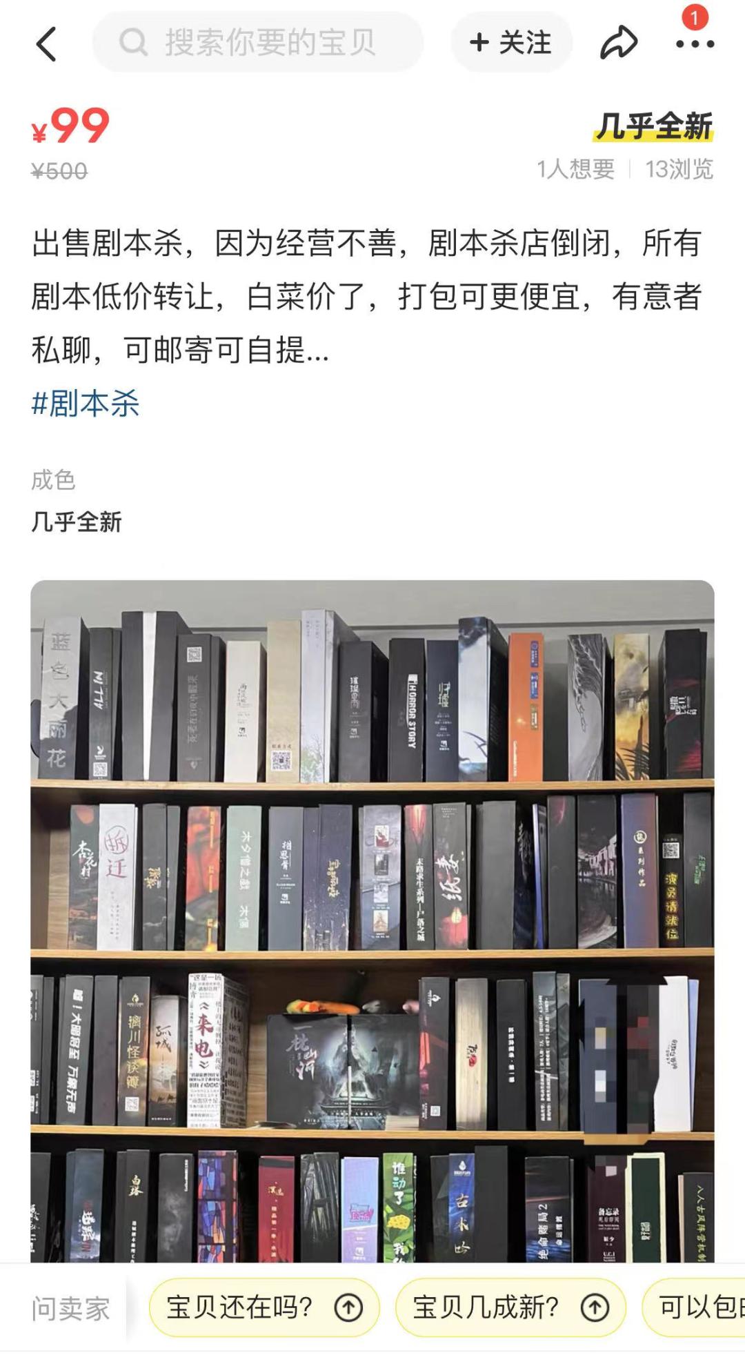“剧本杀店倒闭,所有剧本亏本清仓甩卖”“附近又开了3家店,没客人了”“跟合伙人意见不合,店不开了,白菜价带走”……各式各样的理由似乎拉开了剧本杀退潮的序幕。