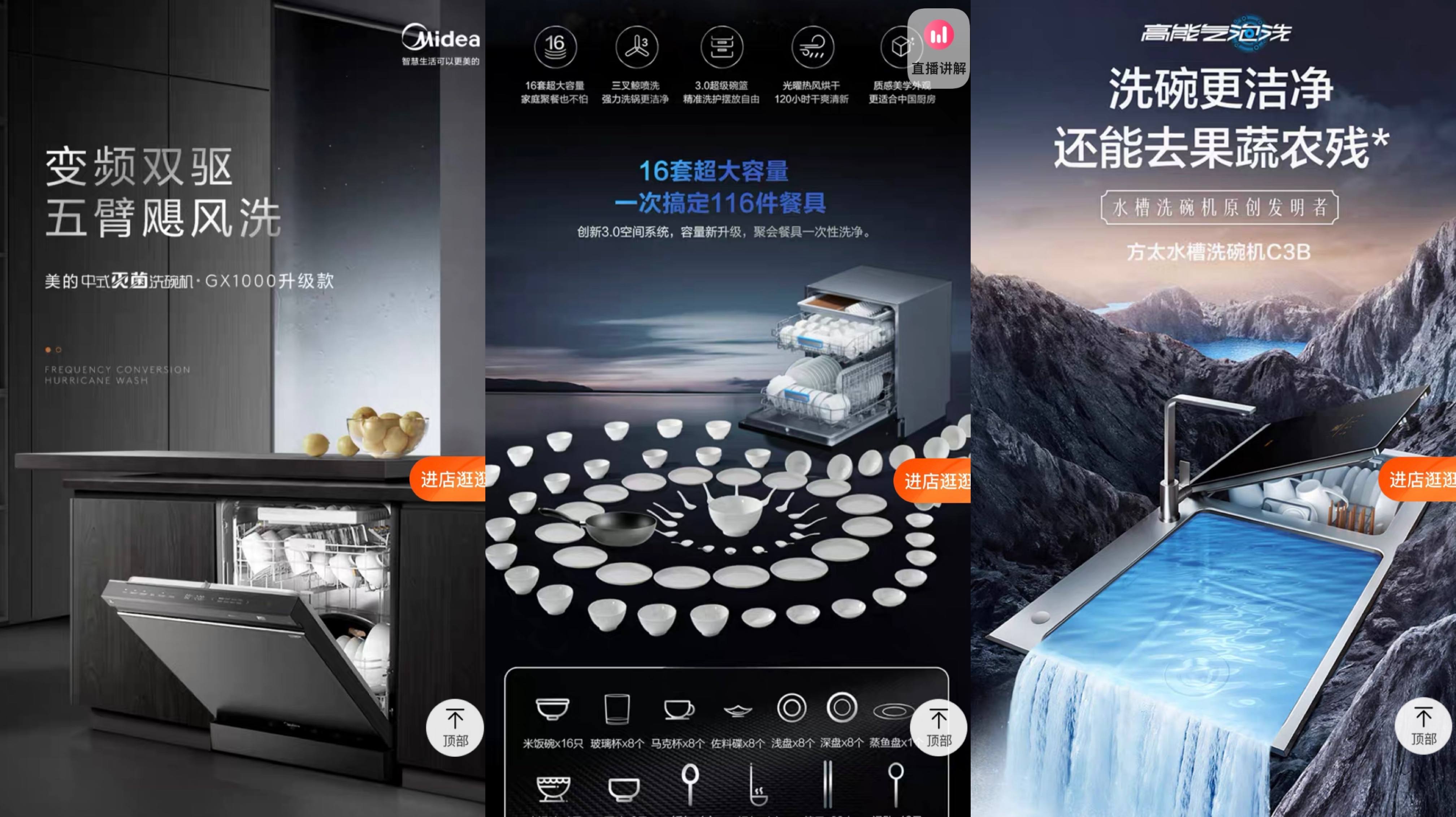 图:从左至右分别为美的、老板电器、方太洗碗机