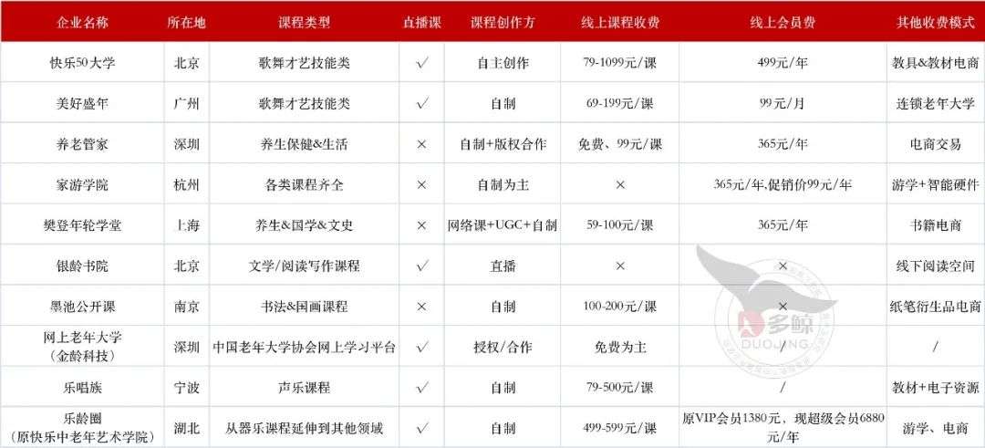典型线上老年教育企业课程开设情况 ,来源 IT 桔子