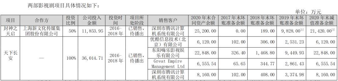 欢瑞世纪在之后的财报中,也曾多次提到过这几部积压作品对自家业绩的影响。其中,《天下长安》《封神之天启》两部作品超6亿的减值,还让其在2021年末直接遭到了深交所问讯。