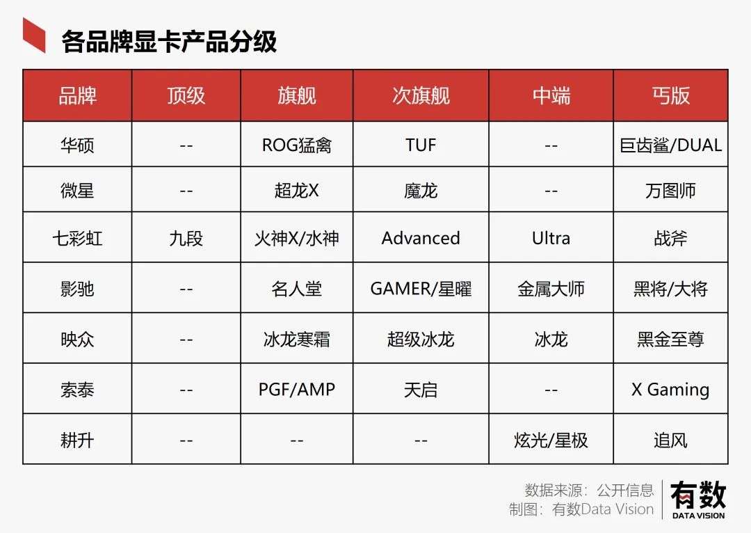 而品牌商推向市场的不同显卡成品,基本都会按照用料的高低配,再按系列进行档次划分进而区分开价格。这就造成了可能同一系列中,高配的旗舰可能是丐版价格的两倍,而这也正是可以赚钱的赢利点。