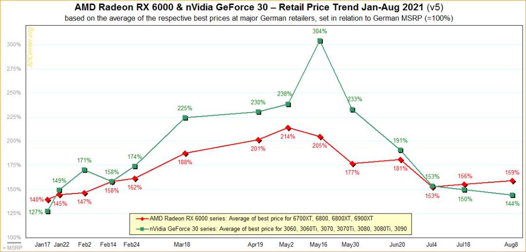 [2] 英伟达和AMD显卡价格已回到2020年末水平,跌至MSRP指日可待,