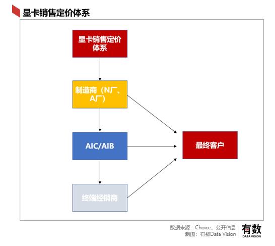 首先我们需要了解显卡的销售流程和定价体系。显卡的定价与三个参与者是密不可分的:制造商,AIC/AIB和终端经销商。而这三者同样又是环环相扣且各自独立的状态。