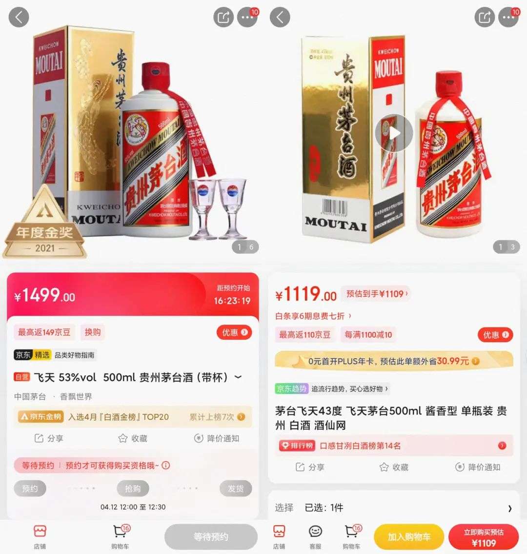 此外,部分主播在卖酒之前,会专门在天猫、京东等主流电商平台注册店铺、上架商品,并标出一个超高价格,以便用类似“原价5000元,直播间优惠价500元”的噱头套路用户。这种玩法虽然屡被诟病,但很难判定为违规。