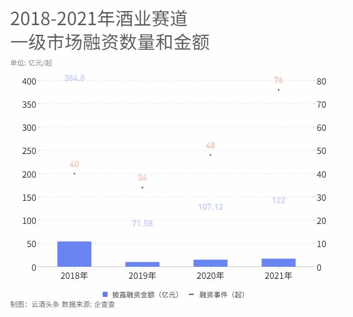 据企查查显示,2018-2021年(截至2021年11月15日),酒业赛道一级市场共发生198起融资事件,批量融资金额共685.5亿元;国盛证券的数据也显示,仅白酒的市场规模就在5000亿元以上。