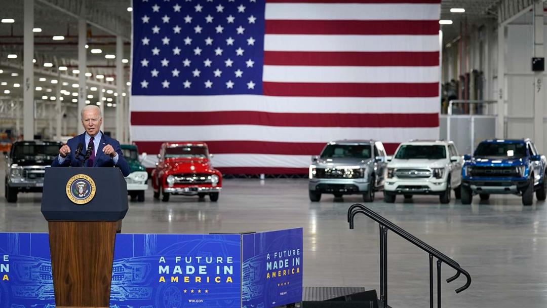 拜登在福特工厂演讲,推销 1740 亿美元的电动车推广计划