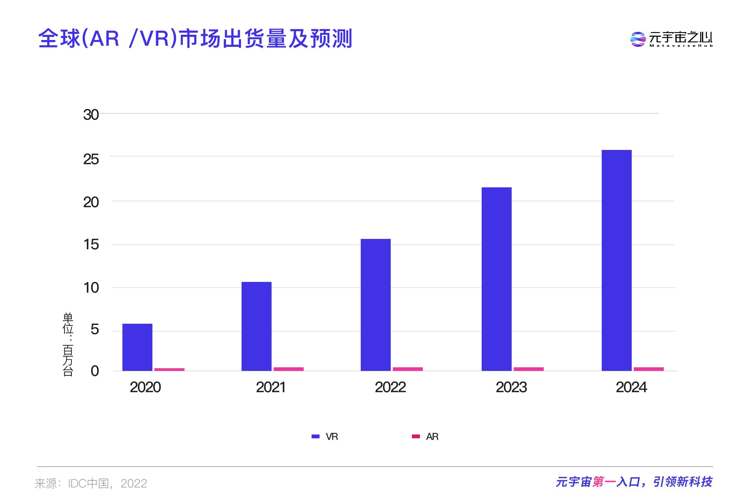 而其预计2022年全球VR头显出货量将突破1573万台,同比增长43.6%。