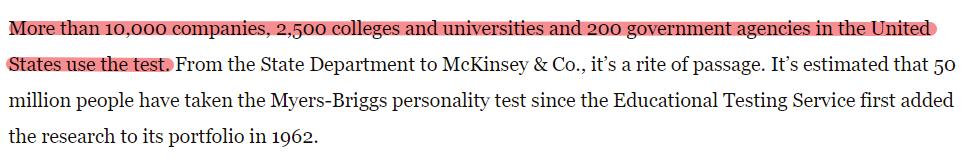 要知道,在美国,有超过 10000 家公司、2500 所高校、200 个政府机构在使用 MBTI 测试。