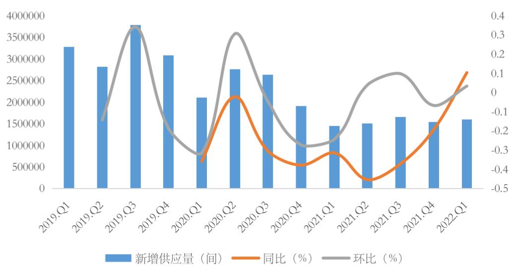 图:2019年-2022年3月全国55城个人房源季度新增供应变动