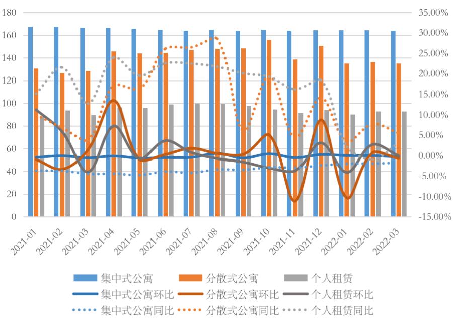 叠加疫情影响,3月份作为传统的租赁旺季,环比也出现下跌,同比增幅显著下降。