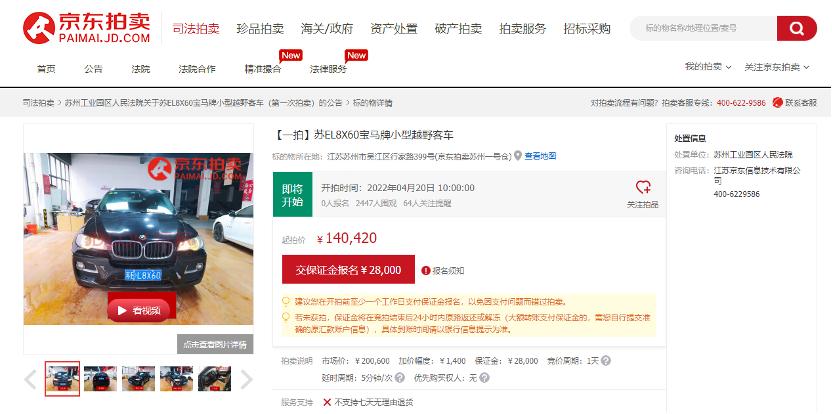 值得留意的是,还有三十余辆法拍车在此次苏州法拍节上拍,均按评估价7折起拍,其中不乏奔驰、宝马、奥迪等品牌。浏览京东拍卖可以发现,页面中对于处置车辆的车型、功率、排量、检验有效信息,以及逾期检验强制报废期、保险终止日期、目前存放位置等都有详细说明,同时在车辆外观检测、内饰检测、装置检测、事故检测等方面,还有专业二手车检测师出具的特别提醒,这意味着竞买人在竞拍之前,就可以对车辆情况进行非常全面和细致的了解,也为竞买人提供了有效的参考价值。