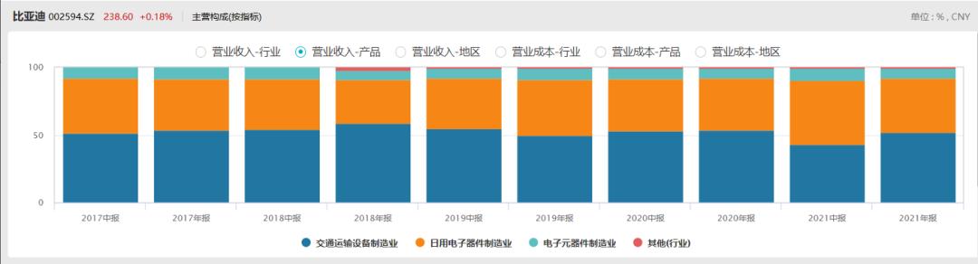 2021年下半年汽车业务已经重回C位(52.04%)。汽车具有更高的毛利率(2021年为17.39%),其权重增大,有利于比亚迪长期盈利能力的改善。