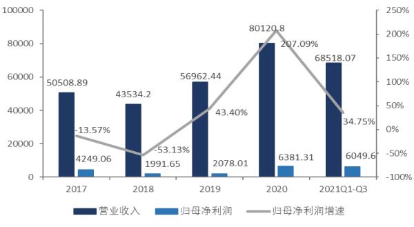 禾昌聚合2017-2021Q3营收与归母净利润,单位:万元 数据来源:wind、36氪整理