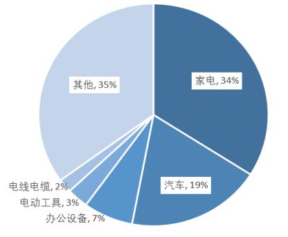 家电方面,虽说家电行业整体增速偏稳,但随着2017年后智能家电浪潮的到来,家电产品更新迭代明显。而且此前传统家电已经“超龄”服务,恰逢家电行业向智能化、高端化方向转型,势必为智能家电带来可观的更新需求。届时,改性塑料在家电产品中的应用及所占比例也会随之提升。