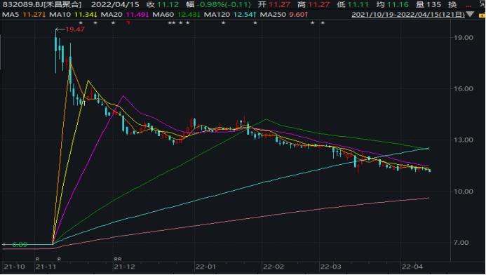 目前看,这些公司近一年的业绩和股价,仿佛是疫情过后的一地鸡毛,令人唏嘘。禾昌聚合自然也未能幸免,自去年11月登陆北交所以来,其股价一路震荡下行。
