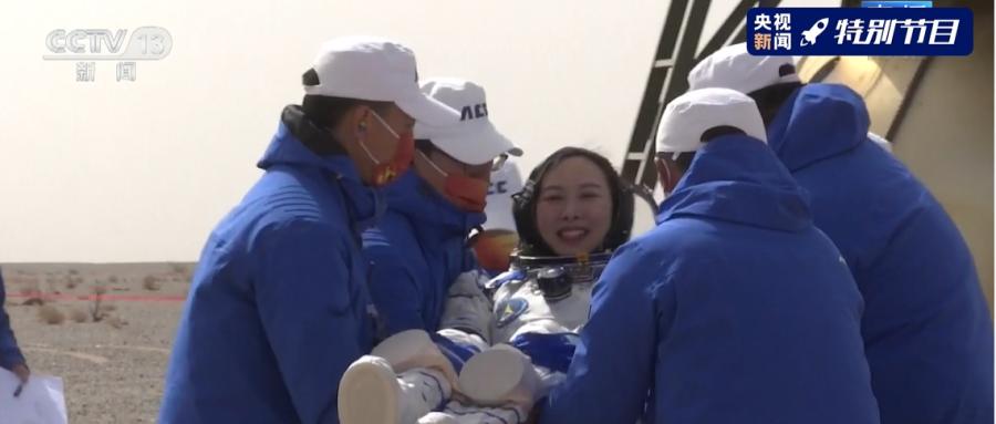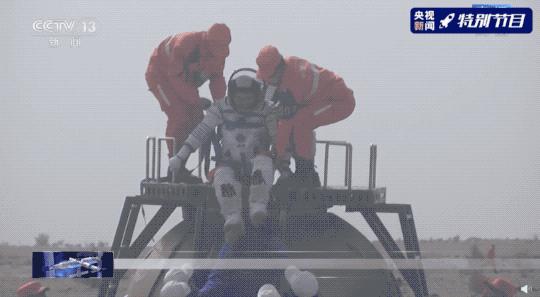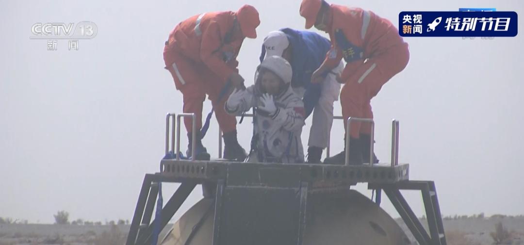 大概三十分钟后,三位航天员依次出舱,宣告神舟十三号完成降落。翟志刚首先出舱并向大家招手致意。