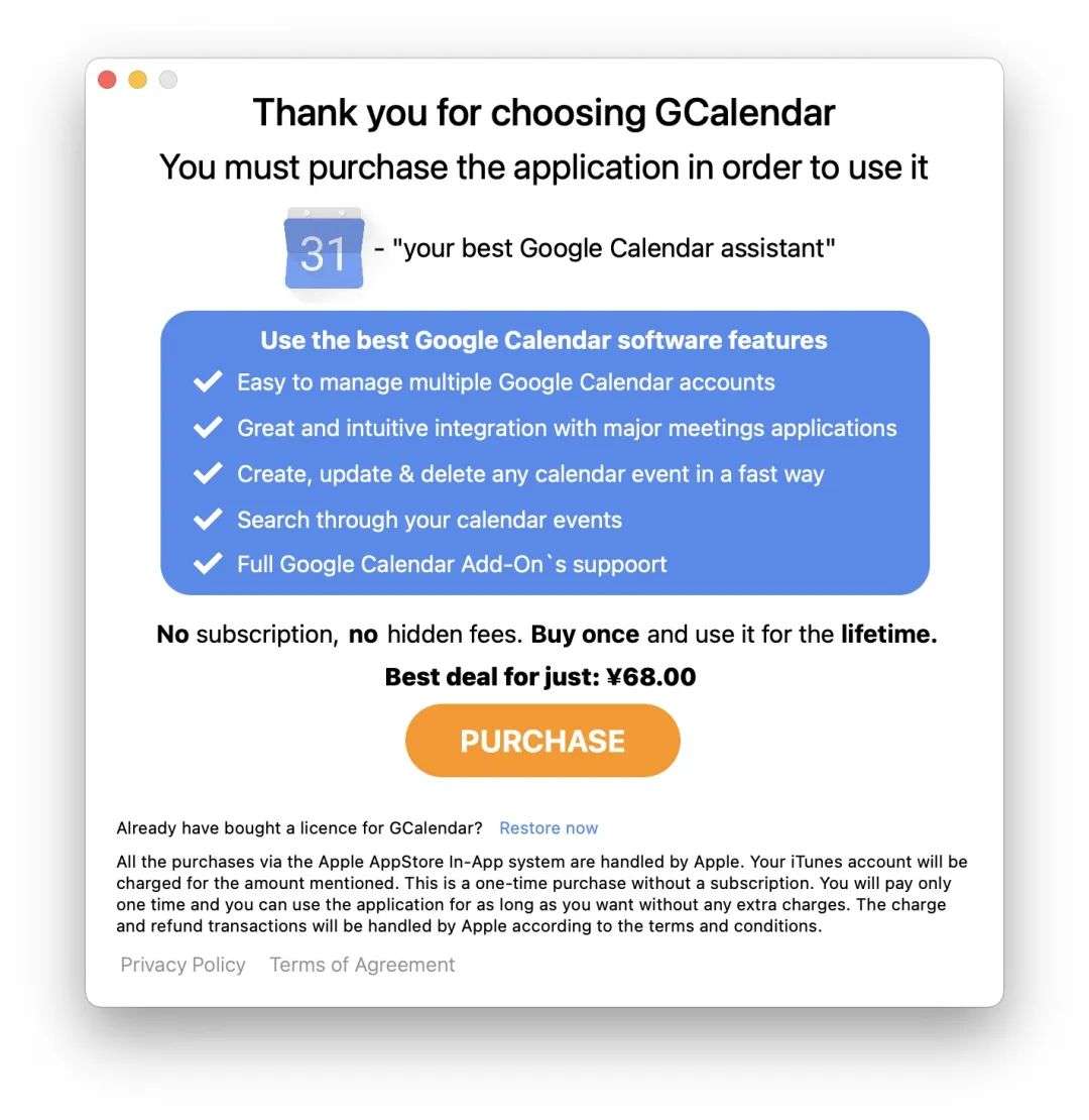 这种选择很正常,这种心理开发者也会注意到,于是名为“免费+内购”,实为“付费下载”的“假内购”模式就出现了,比如Mac App Store平台应用GCalendar for Google Calendar。