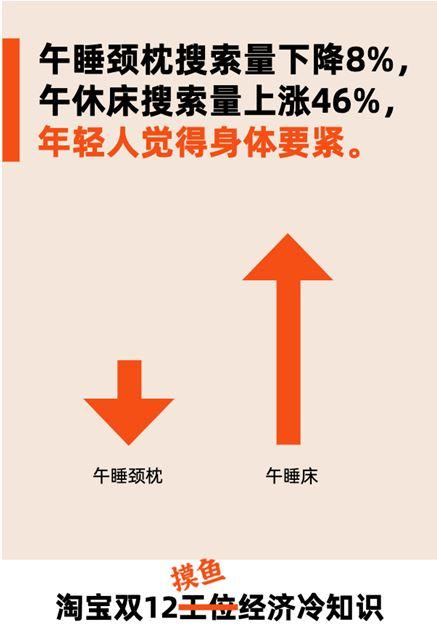 睡觉也越来越被职场人重视,前几年大火的午睡颈枕搜索量同比下降了8%,而午休床搜索量同比上涨了46%。