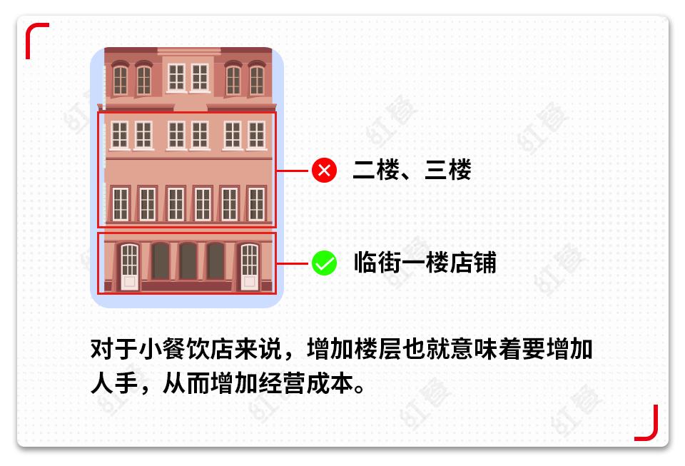 小餐馆最好选择临街一楼店铺,特别是你准备做快餐的话,选在不显眼的楼上基本很难吸引到客人。