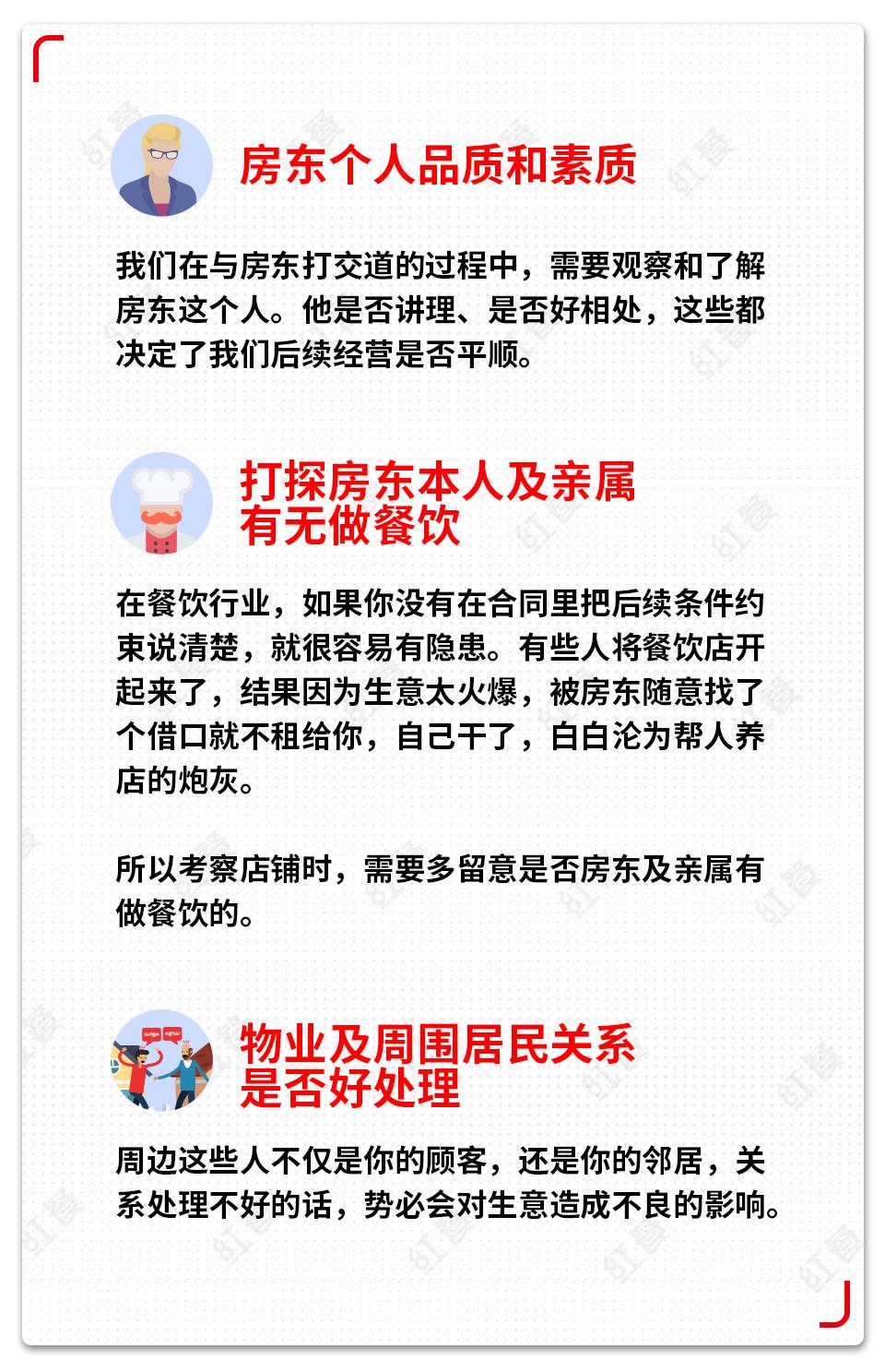 所以在考虑是否租下一个店铺的时候,餐饮人一定不要忽视店铺房东和周围的情况。因为,店开了之后,避免不了需要和房东、物业甚至附近的商铺打交道。